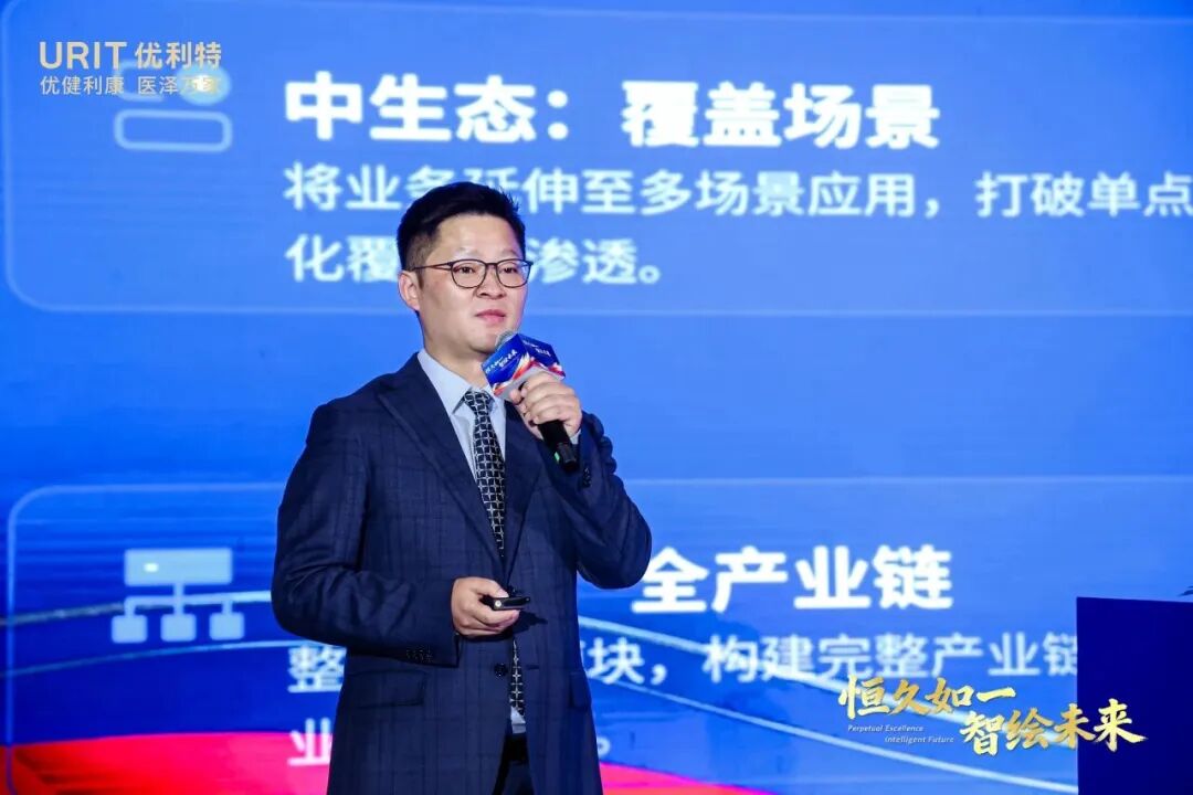 发布会现场,优利特集团常务副总裁黄杰先生发布了面向2030年的品牌战略:“2030成为全球一流IVD品牌”,明确了两大市场里程碑——尿液分析产品全球销量第一,血细胞分析产品全球销量前三。
