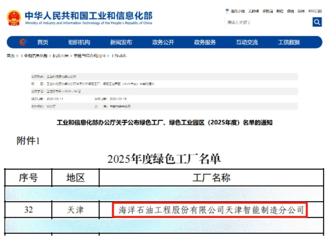 喜报!海油工程天津智能制造分公司获评“国家级绿色工厂”