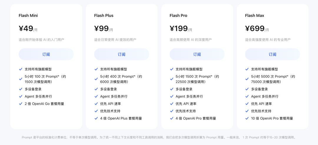 然后 3 月 22 号,他们又推出了面向 Agent 场景的订阅方案 StepPlan,首发支持 Step 3.5 Flash 模型,目前设置了四个档位:Flash Mini、Flash Plus、Flash Pro、Flash Max,起步价 49 元/月,开发者社区限时半价低到 25 元/月。