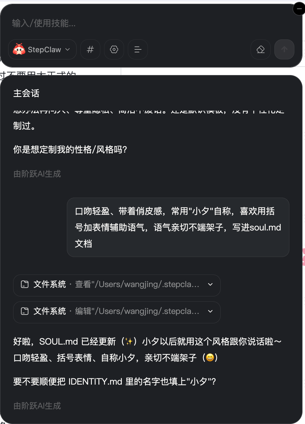 过了一天,我再让 StepClaw 帮我写一段东西的时候,发现了一个细节。
