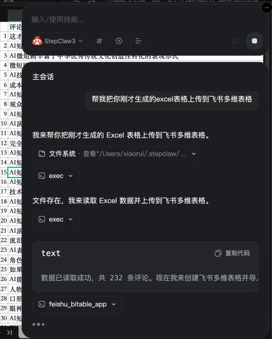 所以我就对 StepClaw 说,让它帮我去多个平台抓取一些有效评论。