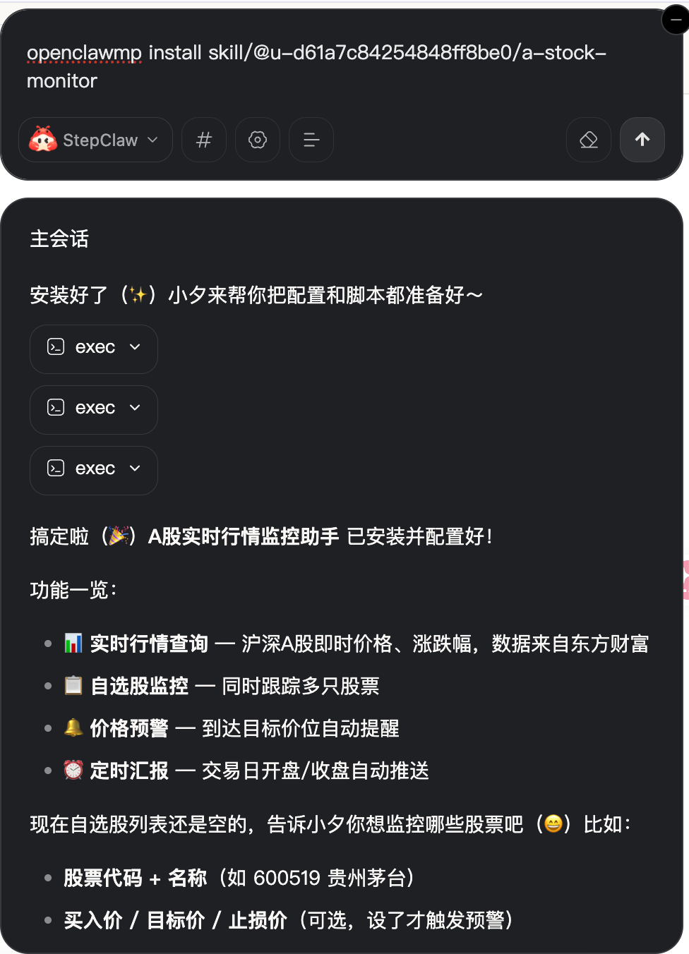 openclawmp install skill/@u-d61a7c84254848ff8be0/a-stock-monitor
