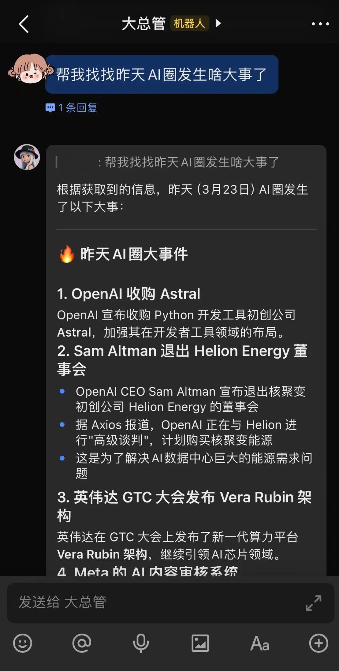 整理完文件夹之后,我又陆续让它做了几件事。写了一份阅读笔记,帮我查了一个 API 的用法,还让它整理了一段会议录音。