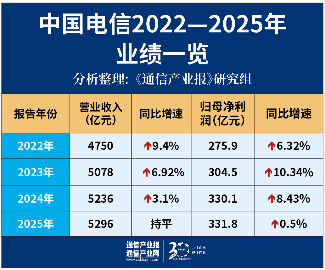 稳中有进:六张表"体检"中国电信2025
