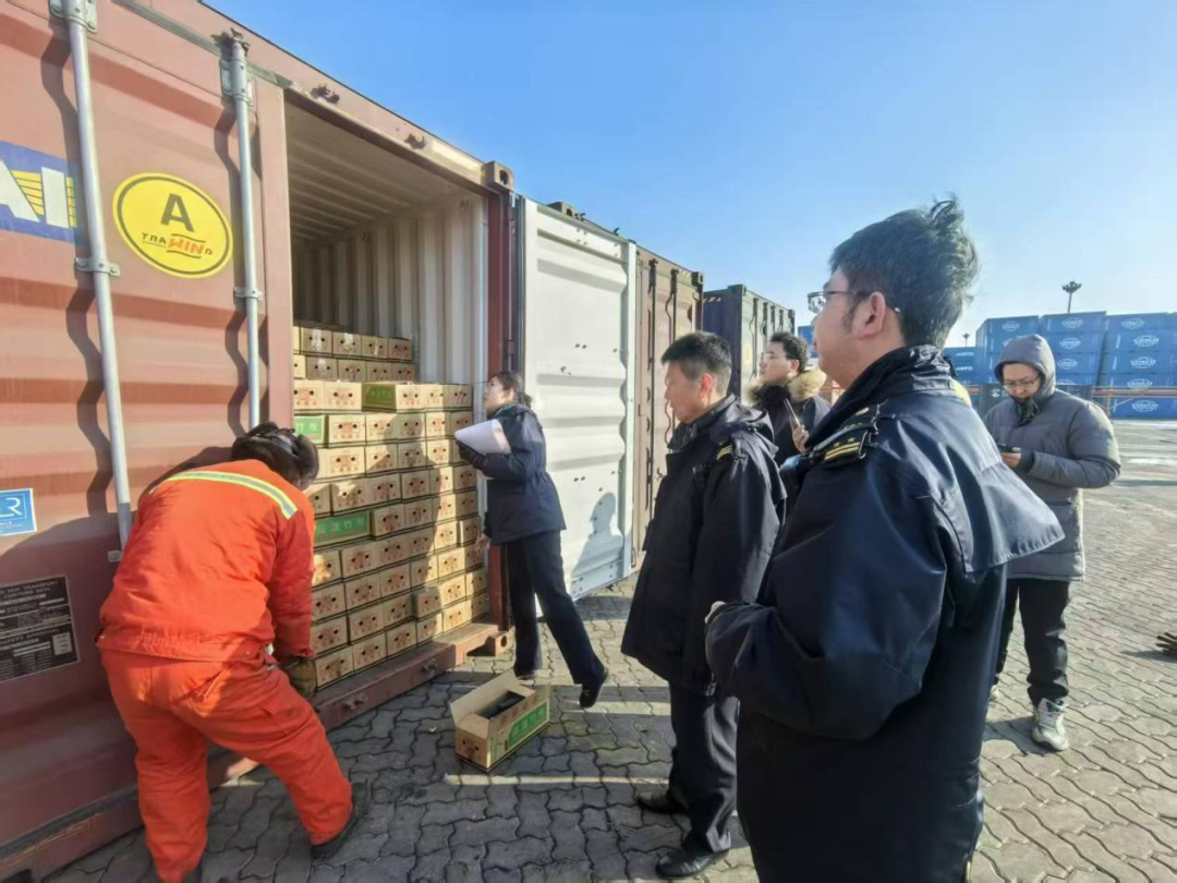 营口海事局执法人员开展开箱查验。营口海事局 张鸿翔 摄