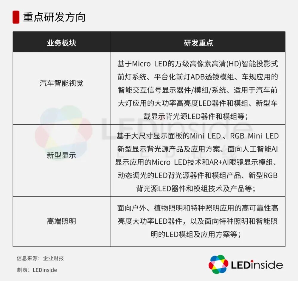 在全球宏观经济环境复杂多变,半导体光电产业处于消费升级、技术融合与行业整合关键阶段的背景下,晶科电子持续深耕汽车智能视觉、新型显示及高端照明三大核心赛道,依托技术创新以及全产业链垂直整合优势,展现出了极强的战略定力与成长韧性。一方面,其汽车智能视觉业务凭借从器件、模组到系统的垂直一体化能力,已稳居国产替代的前沿阵地,并在全球市场的地位逐年上升;另一方面,晶科电子在Micro LED、RGB-Mini COB背光技术等领域的前瞻布局,亦构建了极具想象力的第二增长曲线。2025年,晶科电子实现营收24.31亿元,汽车智能视觉、新型显示、高端照明三大业务的产品收入占比分别为41%、32%、27%。尽管不可避免地受宏观经济环境的影响,但晶科电子的核心业务结构优化成效显著。车规级器件订单增长强劲:受益于车规级器件/模组、Mini LED背光及植物照明产品的需求增长,2025年下半年晶科电子相关业务进一步增加,尤其是车规级器件及模组产品,销售额更是实现了大幅增长。盈利能力回升:随着业务布局的多元化以及高附加值产品占比的提升,晶科电子的盈利能力在波动中逐步提高,展现出强劲的抗风险韧性。据年报显示,晶科电子董事会决议就截至2025年12月31日止年度派付末期股息每10股普通股人民币0.40元(含税),共计派发末期股息人民币21.49百万元,尚待将于2026年6月30日或之前举行的本公司股东周年大会批准。在稳健的成长底色下,晶科电子“三驾马车”也迎来了各自的“高光点”。汽车智能视觉业务依旧是集团重要的增长引擎,其车规级器件与模组业务凭借深厚的技术优势,实现了订单的大幅增长,这表明其垂直整合降本、技术迭代升级等策略奏效,客户认可度与市场占有率均进一步提升。新型显示业务中,在下游应用需求的驱动下,Mini LED背光下半年订单量进一步增加。同时,Mini LED项目产能持续释放,RGB Mini LED工艺良率稳居行业前列,并已稳步推进与知名头部客户的联合研发项目,技术壁垒持续深化。高端照明业务中,受益于存量市场翻新改造带来的LED替代需求以及消费需求的升级,晶科电子植物照明产品凭借国际领先的光电转换效率,也成为高端照明稳定的支撑业务之一。深入观察可见,晶科电子领跑高附加值赛道的背后,在于其创新驱动、高端制造的发展理念下,积累多年的技术专长与垂直整合能力,这一点在“LED+”战略布局与知识产权布局上能够得到直观印证:目前,晶科电子累计已获得全球授权专利453件,发明专利139件,研发实力持续提升,“LED+”技术体系的核心竞争力不断强化。具体到细分领域,晶科电子的技术创新与产业链协同优势亦是显而易见的。在汽车智能视觉市场,晶科电子聚焦ADB矩阵大灯、智能交互尾灯等核心产品,提供智能车灯车规级LED器件和模块,相关产品具有大功率、高亮度、耐腐蚀、寿命长等特点。在车用LED模块技术上,晶科电子开发了LED电子驱动平台技术、前大灯透镜模块技术及电子控制和软件控制技术,为智能车灯系统提供了关键的光电控制技术。产业链协同方面,晶科电子早已构建起从车规级LED器件、中游模组到下游智能车灯系统的全产业链布局,不仅提升了成本控制能力,还能快速响应车企的定制化需求,提供高性价比的一站式解决方案。目前,晶科电子已与吉利、领克、极氪、广汽、长安、理想等二十余家国内主流汽车主机厂及品牌建立深度合作。在新型显示市场,晶科电子在Micro/Mini LED领域的积累已逐步进入成果转化期。一方面,晶科电子在RGB Mini COB与Mini POB两个方向均实现了技术突破并成功量产,有效驱动其Mini LED背光业务占到整体销售收入的20%以上。另一方面,晶科电子加大对Micro LED的产业化布局,尤其是相关技术产品在AI领域的新型显示应用。据LEDinside了解,针对Mini LED COB技术,晶科电子持续提升LED芯片、PCB设计及硅胶等材料的一致性,进而实现了成本、光效、工艺成熟度、产品良率和一次通过率的提升。得益于技术的不断精进,其车载Mini LED背光的渗透率也已开始形成稳定上量。另一项RGB-Mini LED背光技术,晶科电子已联合头部终端品牌聚焦RGB-Mini LED多基色LED光源架构、精准色值控制算法及高效驱动系统的研发,正在协同打造兼具高亮度、高对比度与高色彩纯度的精准控色显示模组解决方案。为迎接即将释放的市场需求,晶科电子也做好了充足的产能规划,其在2025年进一步扩产投资,建成了多条行业领先的Mini LED背光产线,产能正稳定爬坡中。此外,高效智能的管理也为晶科电子稳健发展提供了重要的支撑。自2025年以来,晶科电子持续推进人工智能(AI)在研发、生产制造及运营管理全流程的深度应用,全面持续强化智能制造能力。公司通过先进的数据化系统,对“人、机、料、法、环”等关键生产要素实施全流程精细化管控,有效提升生产一致性与稳定性;同时,借助AI对生产数据进行深度分析,持续优化生产流程,提升产品追溯效率与良品率。此外,集团正积极打造面向汽车智能视觉领域的AI智能体集群平台,通过整合多个面向不同业务场景的专属智能体,打通从产品研发、生产与质量检测的全链路应用,实现关键环节的智能决策与协同优化,为公司长期高质量发展提供持续动力支撑。展望未来,晶科电子正在积极研发汽车智能视觉、Micro/Mini LED、高端照明先进技术,如基于Micro LED的万级高像素高清(HD)智能投