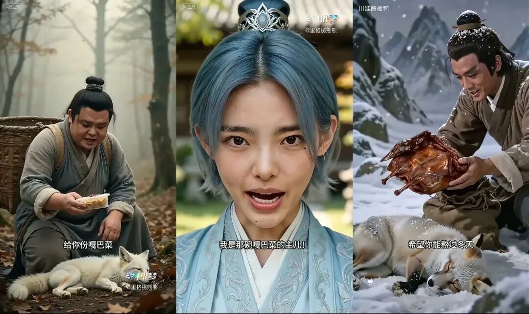 最近,“酱板鸭”梗意外爆火:湖南某食品公司员工用AI制作的短剧《雪山救狐狸》,凭借魔性台词“你可曾在雪山救过一只狐狸?我不是狐狸,我是那只酱板鸭!”引爆全网——相关视频总播放量超50亿次,衍生二创覆盖抖音、B站、小红书等平台。更令人惊喜的是,厦门公安、深圳发布等数十个政务号主动接梗,用“酱板鸭”改编反诈提醒和安全提示,实现破圈传播。