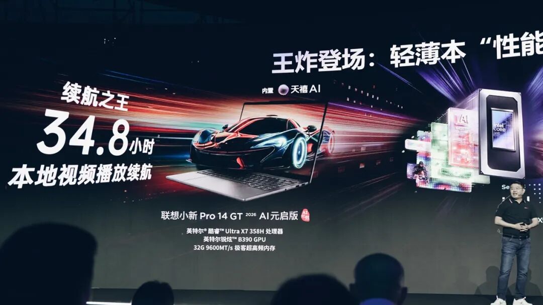 Panther Lake最初发布之际,最吸引眼球的卖点无非就是标称27小时的笔记本续航了。我们前不久的Panther Lake笔记本体验也验证了,Office办公续航测试中,99Whr电池容量的Panther Lake笔记本有机会达到20小时续航时长,还是相当惊艳的。联想在分享会上介绍新机时,甚至给即将上市的小新Pro 14 GT AI元启版标了34.8小时的本地视频播放续航时长。