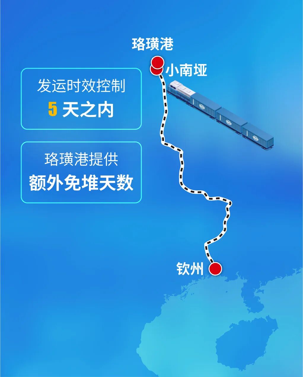 本次主推的陆海新通道内贸海铁联运线路,可有效规避三峡修坝带来的物流不畅制约,全程不受枯水期影响,实现365天稳定发运。依托“铁路+海运”多式联运优势,实现 “一次委托、全程服务” ,大幅减少中间衔接环节,同时可享受钦州港杂减免福利,进一步降低整体物流成本。全程货物可追踪,确保东北粮食安全、高效送达重庆、湖南各核心节点。