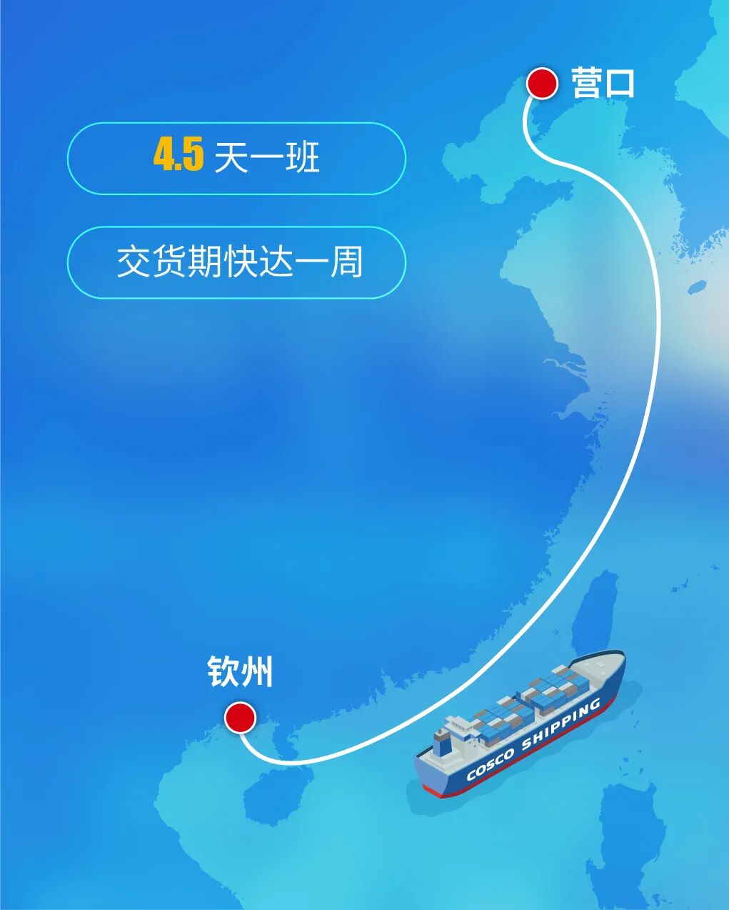 在海运段,泛亚航运依托IC29精品航线,提供营口—钦州的稳定服务,班期密度达到平均4.5天一班,确保东北粮源能够快速、准时集结出运。港到港交货期快达一周,大幅压缩海上运输时间,为东北粮食南下打造一条高效稳定的海上高速通道。