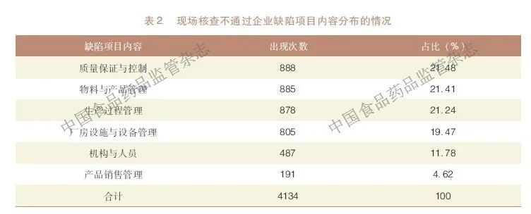 2 现场核查不通过企业缺陷项目分布情况