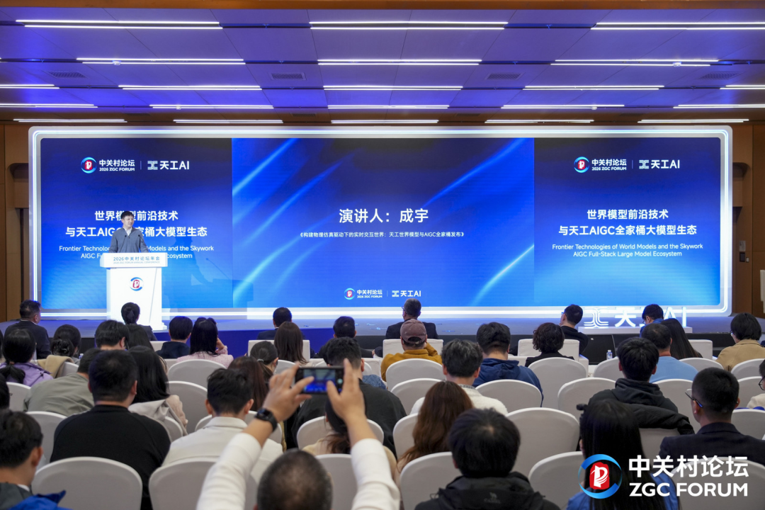 答案就藏在谜面上,中关村论坛期间,昆仑万维举办的专场发布会名称「世界模型前沿技术与天工AIGC全家桶大模型生态」回答了一切。