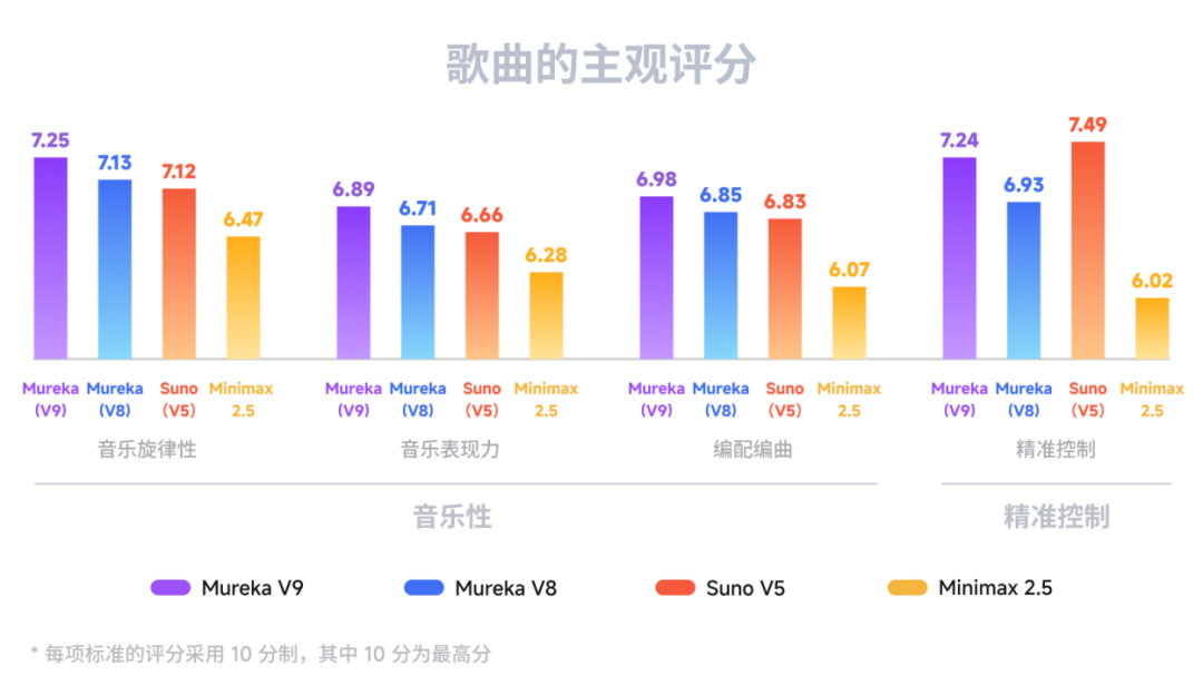 通俗来说,Mureka V9 已经能使 AI 音乐从简单生成一首歌,进一步迈向能够更稳定地按创作意图创作一首好听的歌,从普通人的音乐生成玩具,升级为专业音乐人的生产级工具。