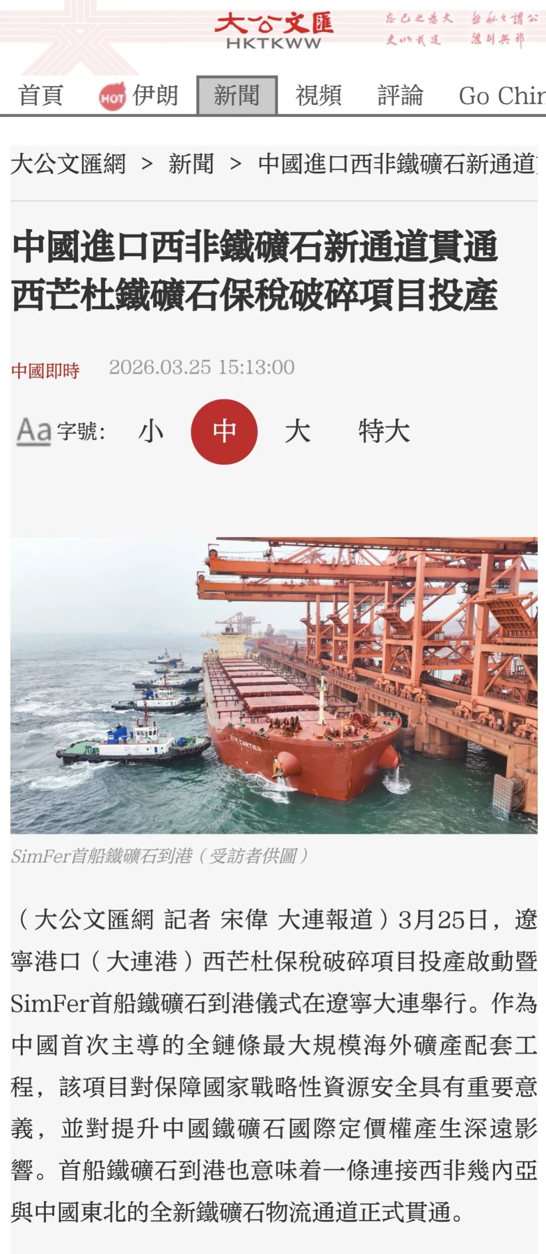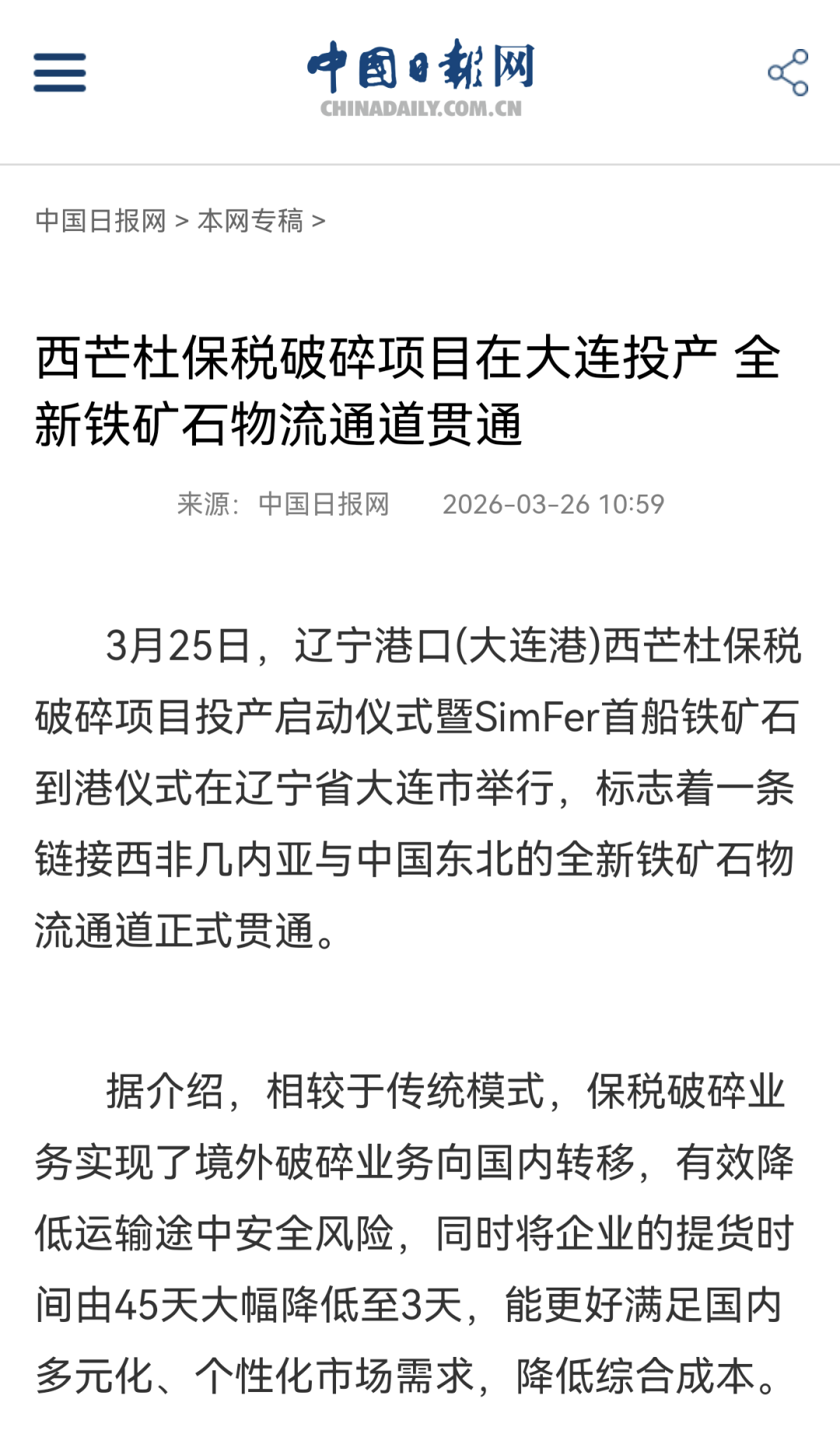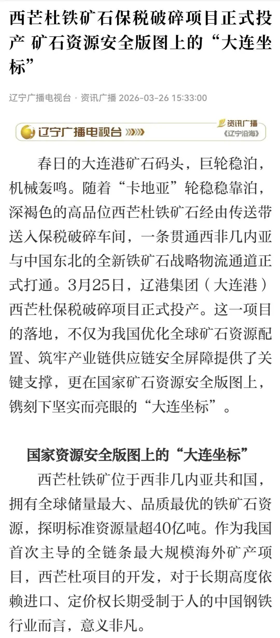 连日来,人民日报、中央广播电视总台、经济日报、中国日报、中国新闻社、大公报、辽宁日报、辽宁广播电视台、大连日报、大连广播电视台、中国交通报、中国水运报、港口圈等主流及行业媒体,走进大连港、营口港,围绕西芒杜铁矿石保税破碎项目投产、东北地区最大化肥中转枢纽保障春耕、畅通东北全域产业物流脉络等进行集中报道,多维度呈现辽港集团主动服务国家资源安全、粮食安全、东北全面振兴等的责任担当与亮眼成绩。