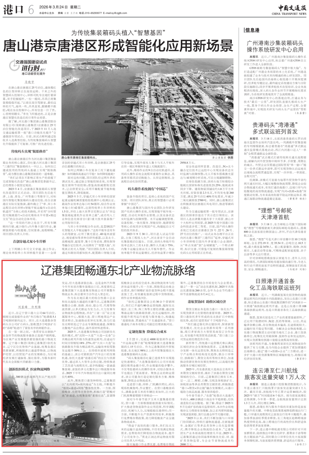 为服务区域经济社会高质量发展,辽港集团一直以来充分发挥港口枢纽作用,织密航线网络、优化物流链条、降低物流成本,全力打造“两枢纽、一中心”,为新时代东北全面振兴注入强劲动力。3月24日,中国交通报刊发深度报道《辽港集团畅通东北产业物流脉络》,用文字记录下辽港集团助力区域经济高质量发展的生动实践。