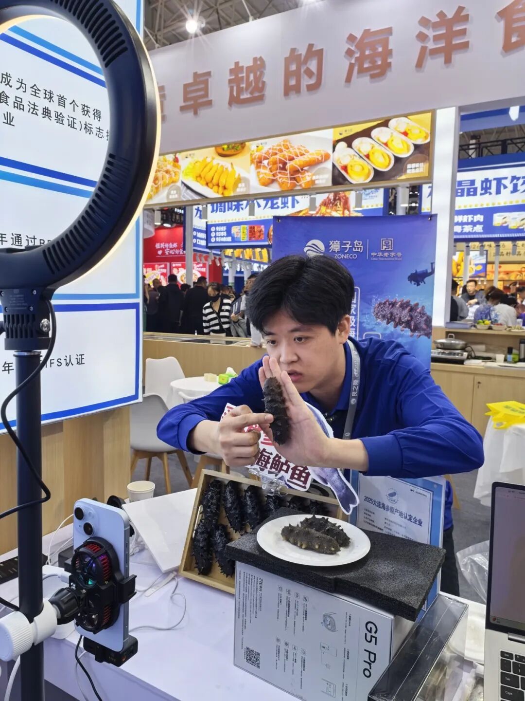 线下人潮涌动,线上同样热度不减。展会期间,獐子岛集团官方抖音直播间每日上午9点开播,主播带领网友沉浸式“云逛展”,实时转播展会现场盛况,并在直播间派发多轮专属福利,让屏幕前的观众足不出户即可共享行业盛会动态。