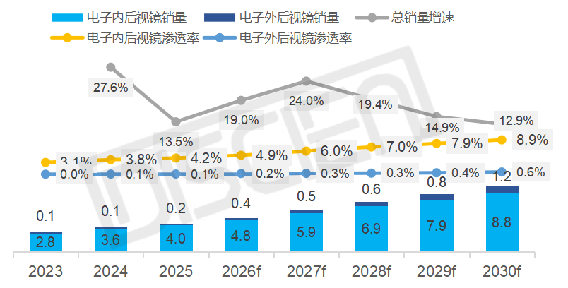 当前 CMS 在乘用车市场的渗透率仍处于导入期,前装订单主要集中于高端豪华车型。受限于视觉、安全、成本等多维阻力,CMS 将与传统光学镜呈现长期共存、互补发展的竞争格局。在安全法规演进与智能驾驶技术的双轮驱动下,CMS具备明确的长期投资价值与技术升级路线,展现出结构性增量机会,预计到 2030 年,全球 CMS 面板市场出货量将跨越 1000 万片大关。