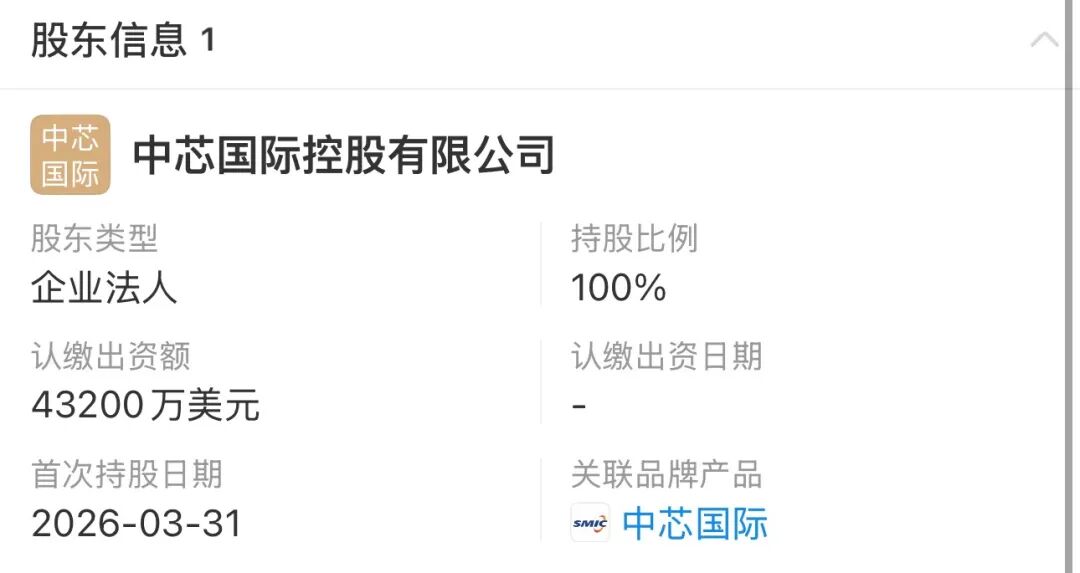 股东信息显示,该公司由中芯国际控股有限公司全资持股。