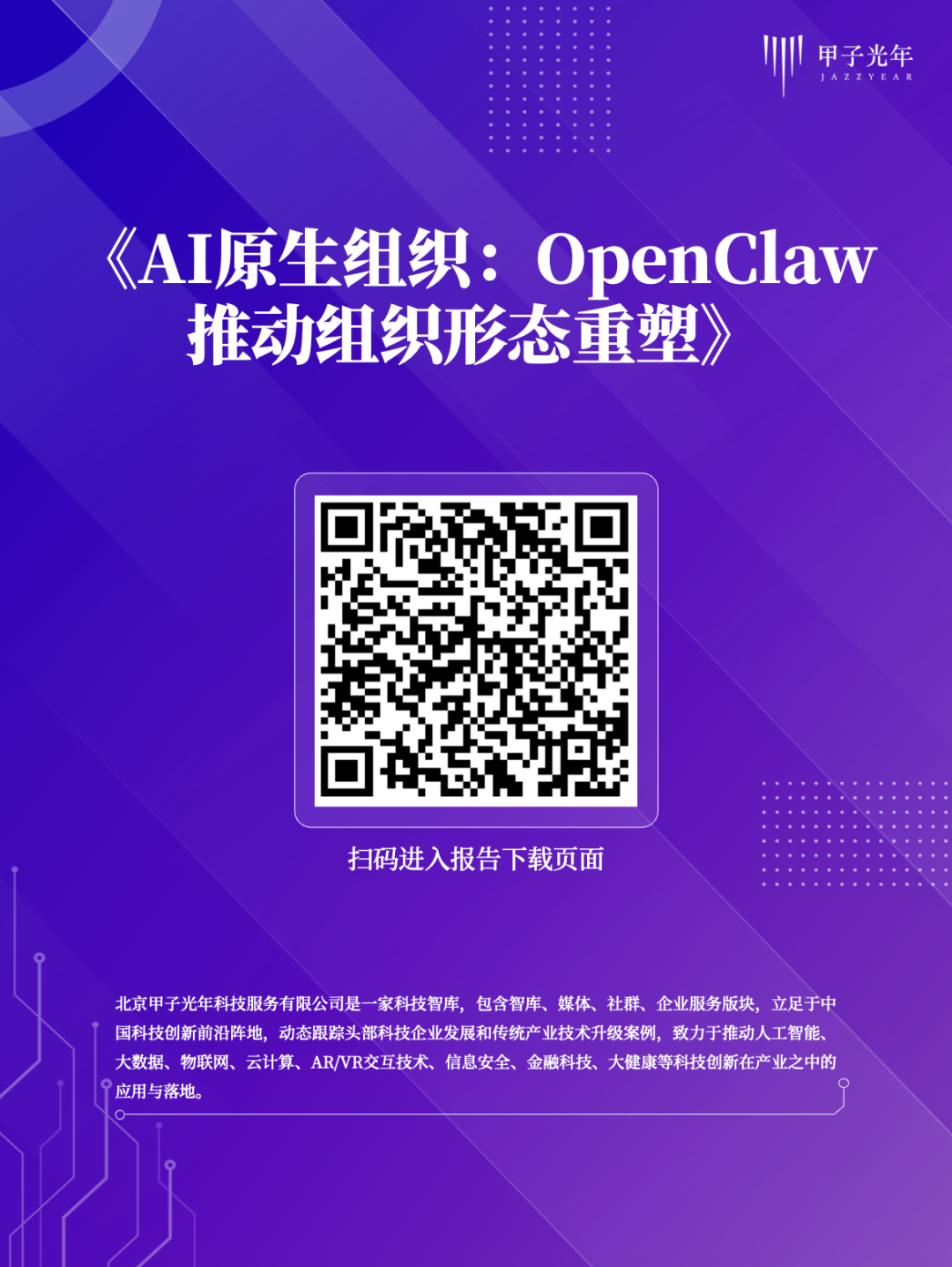 点击即可查看《AI原生组织:OpenClaw推动组织形态重塑|甲子光年智库》