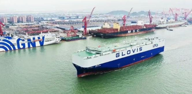 3月31日,广船国际有限公司为韩国HMM公司建造的10800车LNG双燃料汽车运输船(PCTC)1号船出海试航,该船是目前全球在建的首艘万车级双燃料汽车运输船。