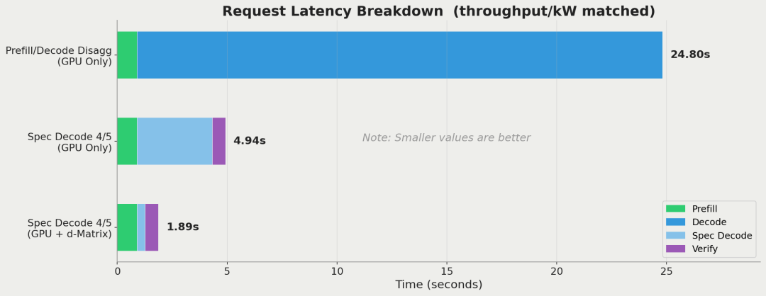 采用d-Matrix Corsair+GPU的结构,可将端到端请求延迟最高降低10倍。图片来源:Gimlet。