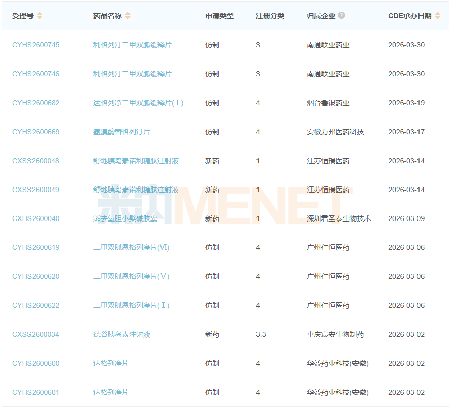 今年3月糖尿病用药(化+生)产品报产在审情况