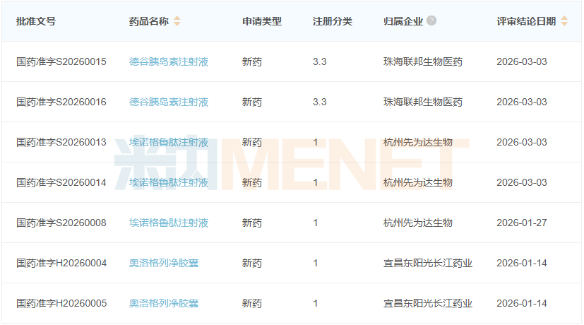 今年以来,糖尿病用药(化+生)已有28个品种(55个受理号)获批上市,其中,3个为新药,宜昌东阳光长江药业的奥洛格列净胶囊、杭州先为达生物的埃诺格鲁肽注射液为1类新药,珠海联邦生物医药的德谷胰岛素注射液为国产第2家。