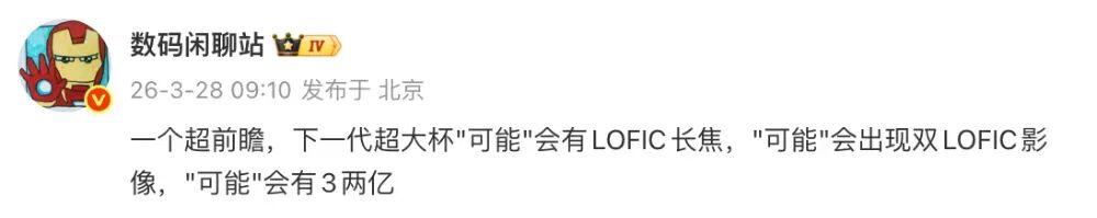 相关的推测认为其指的是小米旗下产品,预计为小米18 Pro Max。除了主摄升级,还有消息显示,小米18 Pro Max的长焦镜头也升级到了2亿像素,支持高规格的微距特写功能,光圈尺寸进一步增大。与此同时,这位博主的另一份爆料中还提到过,“下一代超大杯‘可能’会有LOFIC长焦,‘可能’会出现双LOFIC影像,‘可能’会有3两亿”这一信息。其中同样没有提到具体的产品系列信息,但相关推测认为其指的是小米 18 Ultra。也就是说,小米 18 Ultra有可能后置三颗两亿像素镜头,带来影像能力的进一步升级。参考来看,小米17 Ultra 搭载徕卡2亿像素光学变焦1/1.4″超大底传感器、50MP光影猎人1050L影像传感器、50MP徕卡超广角镜头组合。小米 17 Pro Max搭载50MP徕卡超高动态主摄、50MP徕卡超聚光潜望长焦、50MP徕卡超广角组合。与此同时,不少用户喜欢的背屏设计在下一代小米数字系列中也有望继续搭载。随着相关功能的不断覆盖,后续的小米背屏体验效果也有望提升。除此之外,相关的爆料还显示,“下一代6.3小屏也在评估双2亿影像”。结合推测来看,这款6.3英寸小屏机指的应该是小米18系列产品。作为参考,目前在售的小米6.3英寸机型有小米17和小米17 Pro。另外,博主@智慧皮卡丘 的一份爆料中提到过,“迭代测试全系3X潜望,家族式Deco。四摄全焦段也在评估。”结合爆料所带的话题标签来看,其指的有可能是小米18系列。也就是说,标准版本小米18将搭载潜望长焦。同时,这位博主的最新爆料显示,“底层代码开始优化新比例和多悬窗的适配,Q3开始 折叠,直板机都是很激进的宽度。”结合其中的话题来看,这份爆料中提到的信息应该与新一代的小米18系列有关。按照爆料中的信息来看,将在 8 月发布的澎湃 HyperOS 4 有望成为首个真正意义的“零遗留”系统版本。基于此,系统的流畅度与响应速度预计会带来大幅度的跃升,老旧机型以及入门、中端设备也会受益。