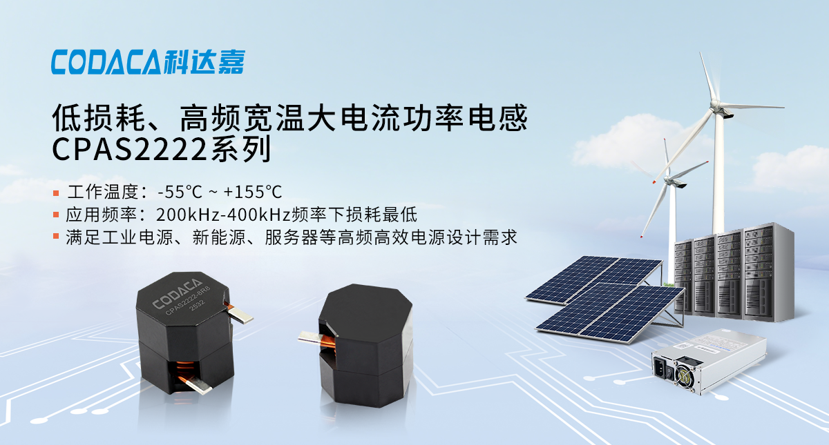 在工业电源、新能源、服务器电源等电源设计领域,持续提升的功率密度、能效需求对电感元件提出了更为严苛的挑战。尤其是在高应用开关频率、高工作电流、高工作温度等场景下,电源系统对功率电感性能提出很高的要求。科达嘉最新推出的CPAS2222系列超级大电流电感通过磁芯材料及电感制造工艺的创新,以卓越性能成为高频高效电源设计的理想选择。一、技术升级实现性能突破科达嘉CPAS2222是大电流功率电感CPAG2222的升级品,采用低损耗磁芯和扁平线圈绕组设计,具有优异的直流偏置能力,可处理瞬间高峰值电流而不饱和。电感值、直流偏置特性受温度影响小,可在+155℃高温下连续工作。电感器采用扁平线绕组实现极低的直流电阻,实现大功率,低温升效果。电感值范围1.90~10.00 μH,饱和电流范围31.00~76.00 A,温升电流范围32.00~57.00 A。相较于前代CPAG系列,CPAS2222系列采用了科达嘉最新研发的宽频宽温磁芯材料,在高频宽温环境下保持稳定的电气性能,在高频应用下电感损耗低,满足现代高频开关电源设计需求。二、卓越性能铸就核心优势CPAS2222系列大电流电感具有以下优势和亮点:1、强大的抗饱和能力:CPAS2222系列电感拥有优异的直流偏置特性,抗饱和能力强,能够轻松应对瞬时高峰值电流冲击,确保系统在动态负载下的稳定运行。2、高频低损耗特性:采用科达嘉自主研发的高频低损耗磁芯材料,在高频应用环境下磁芯损耗低。其中,在200kHz - 400kHz频率下电感磁芯损耗最低。图1 CPAS2222系列与同封装尺寸电感在500kHz频率下的磁芯损耗对比在500kHz工作频率下,对CPAS2222系列电感与同封装尺寸的常规电感进行了磁芯损耗测试,重点考察了不同温度环境下的性能表现(如图1)。测试数据显示,两种电感在不同温度条件下的损耗数据曲线变化趋势相近,均展现出优异的温度稳定性。然而,CPAS2222系列电感在磁芯损耗方面表现更为突出,其损耗值较同封装尺寸的常规电感降低了约40%。这一显著优势使CPAS2222系列电感成为高频高效电源设计的理想选择。3、高效的功耗控制:电感器采用扁平线绕组技术,显著降低了直流电阻(DCR),从而大幅减少铜损,提升电感整体能效。4、良好的温度稳定性:电感值与直流偏置特性受温度影响小,在-55℃至+155℃的温范围内性能一致,保障了系统在全工况下的可靠性。5、出色的抗电磁干扰性能:磁屏蔽结构设计,具有很强的抗电磁干扰(EMI)能力,也便于高密度布局,避免对周边敏感电路造成影响。图2 CPAS2222系列饱和电流曲线图3 CPAS2222系列温升电流曲线四、应用广泛,助力大功率电源设计科达嘉CPAS2222超级大电流电感以高应用频率、高饱和电流、高工作温度、高可靠性助力电源工程师突破设计瓶颈,为下一代电力电子设备注入可靠的核心动力,适用于大功率应用场景,应用领域主要包括:◾ 光伏逆变器、储能系统等新能源设备◾ 工业自动化控制、伺服驱动等工业电源◾ 大电流DC/DC转换器、开关稳压器◾ 服务器主板、通信设备电源等五、环保认证及生产情况产品已批量生产,交期4-6周。产品符合RoHS、REACH、无卤等环保要求。如需了解产品详情,请访问科达嘉官网或联系销售人员。