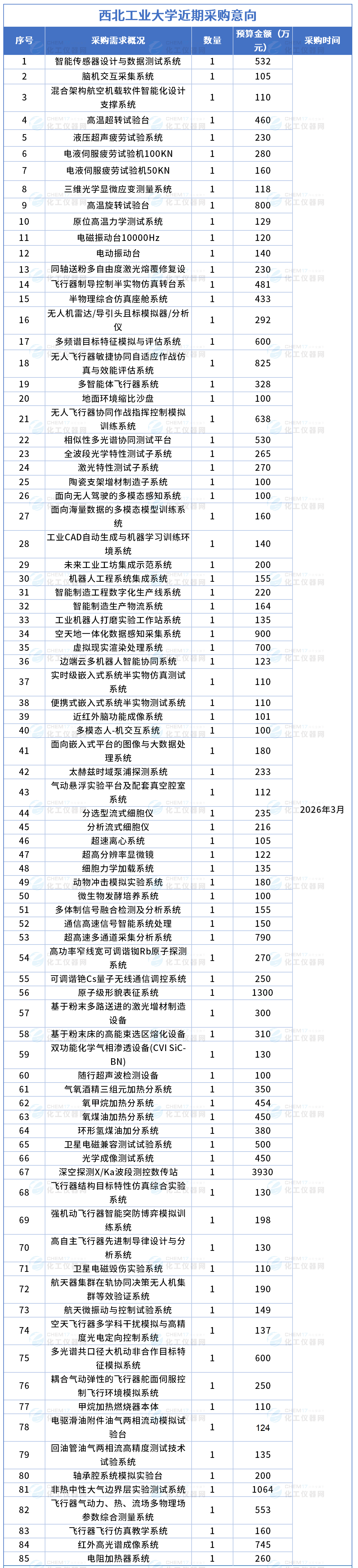 总金额超2.8亿!西北工业大学发布多项仪器采购意向
