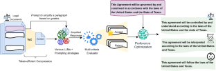 Abstract Legal documents are notorious for their length, density, and jargon-heavy language, making them challenging to navigate and comprehend. This highlights a strong need for clear and accessible documentation for a diverse audience. Text simplification at multiple levels, tailored to individuals with diverse backgrounds and expertise, is essential in making legal content universally accessible. To this effect, in this work, we focus on paragraph-level simplification of legal contracts and introduce Graded Simplification for Legal Data, a framework that adapts contract clauses across three competency levels: Skilled, Intermediate, and Basic. We employ Large language models (LLMs) to perform graded simplification, supported by a Token efficient Compression mechanism that incrementally encodes document context across paragraphs within fixed tokens, making it well suited to lengthy contracts. To address the challenge of reliably evaluating legal simplification at scale, we design a multi-criteria evaluation framework that jointly assesses readability, lexical simplicity, semantic preservation, and entailment. This framework enables the creation of our key resource, the SimpLegal dataset, an English-language preference dataset of paragraph-level contract simplifications. Using this dataset for Direct Preference Optimization (DPO), we achieve notable gains (\(\uparrow \)5 points) in readability and simplicity over zero-shot prompting-based baselines. Collectively, these contributions underscore the importance of graded, paragraph-level simplification for contracts and demonstrate that small and medium-scale LLMs, when fine-tuned on preference data, can achieve performance comparable to larger models, providing a scalable pathway for accessible and comprehensible legal documentation. Our code and dataset are made available at https://github.com/GSLD-SimpLegal/FromJargonToClarity.git. This is a preview of subscription content, log in via an institution to check access. Access this article Log in via an institution Subscribe and save Springer+ from $39.99 /Month Starting from 10 chapters or articles per month Access and download chapters and articles from more than 300k books and 2,500 journals Cancel anytime View plans Buy Now Buy article PDF USD 39.95 Price excludes VAT (USA) Tax calculation will be finalised during checkout. Instant access to the full article PDF. Institutional subscriptions Fig. 1Fig. 2Fig. 3Fig. 4 Explore related subjects Discover the latest articles, books and news in related subjects, suggested using machine learning. Natural Language Processing Techniques for Sentiment Analysis Data Availability The link to code and data has been shared in the manuscript. Noteshttps://www.sec.gov/edgar/search-and-accesshttps://github.com/GSLD-SimpLegal/FromJargonToClarity.git.https://openai.com/chatgptIn our experiments, we observed that the models typically converge to their best response by the third or fourth iteration. We set \(i=2\) and \(j=10\), balancing computational constraints and convergence.Empirically, scores between 0.3–0.5 indicated semantic drift; thus, 0.6 was adopted as a stricter cutoff.https://scikit-learn.org/stable/modules/generated/sklearn.metrics.cohen_kappa_score.html (Cohen’s Kappa implementation in scikit-learn)https://github.com/LexPredict/lexpredict-lexnlp96 candidates \(\times \) 6K paragraphs = 576K total candidate paragraphstop 15 responses selected, (\(6000 \times 15\)); not all pairs were retained, final set ~65000https://pypi.org/project/textstat/ (textstat library for readability metrics)https://scikit-learn.org/stable/modules/generated/sklearn.metrics.cohen_kappa_score.html (Cohen’s Kappa implementation in scikit-learn)https://pingouin-stats.org/generated/pingouin.intraclass_corr.html (Intraclass Correlation Coefficient implementation in Pingouin)https://huggingface.co/meta-llama/Llama-3.3-70B-InstructWe reused publicly available implementations where possible and otherwise implemented faithful reproductions based on the methodologies described in the original papers.ReferencesAbend O, Rappoport A (2013) Universal conceptual cognitive annotation (UCCA). In: Schuetze H, Fung P, Poesio M (eds) Proceedings of the 51st annual meeting of the association for computational linguistics (volume 1: Long Papers), pp 228–238. Association for Computational Linguistics, Sofia, Bulgaria. https://aclanthology.org/P13-1023/Al-Thanyyan SS, Azmi AM (2021) Automated text simplification: a survey. ACM Comput Surv (CSUR) 54(2):1–36Article Google Scholar Asthana S, Rashkin H, Clark E, Huot F, Lapata M (2024) Evaluating LLMs for targeted concept simplification for domain-specific texts. In: Al-Onaizan Y, Bansal M, Chen Y-N (eds) Proceedings of the 2024 conference on empirical methods in natural language processing, pp 6208–6226. Association for Computational Linguistics, Miami, Florida, USA. https://doi.org/10.18653/v1/2024.emnlp-main.357. https://aclanthology.org/2024.emnlp-main.357/Asthana S, Rashkin H, Clark E, Huot F, Lapata M (2024) Evaluating llms for targeted concept simplification for domain-specific texts. In: Proceedings of the 2024 conference on empirical methods in natural language processing, pp 6208–6226Bai Y, Kadavath S, Kundu S, Askell A, Kernion J, Jones A, Chen A, Goldie A, Mirhoseini A, McKinnon C et al (2022) Constitutional ai: Harmlessness from ai feedback. arXiv preprint arXiv:2212.08073Bakker J, Vendeville B, Ermakova L, Kamps J (2025) Overview of the clef 2025 simpletext task 1: Simplify scientific text. Working Notes of CLEF 3147–3162Bhattacharya P, Hiware K, Rajgaria S, Pochhi N, Ghosh K, Ghosh S (2019) A comparative study of summarization algorithms applied to legal case judgments. In: European conference on information retrieval, pp 413–428. SpringerBhattacharya P, Poddar S, Rudra K, Ghosh K, Ghosh S (2021) Incorporating domain knowledge for extractive summarization of legal case documents. In: Proceedings of the eighteenth i